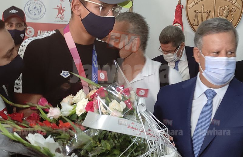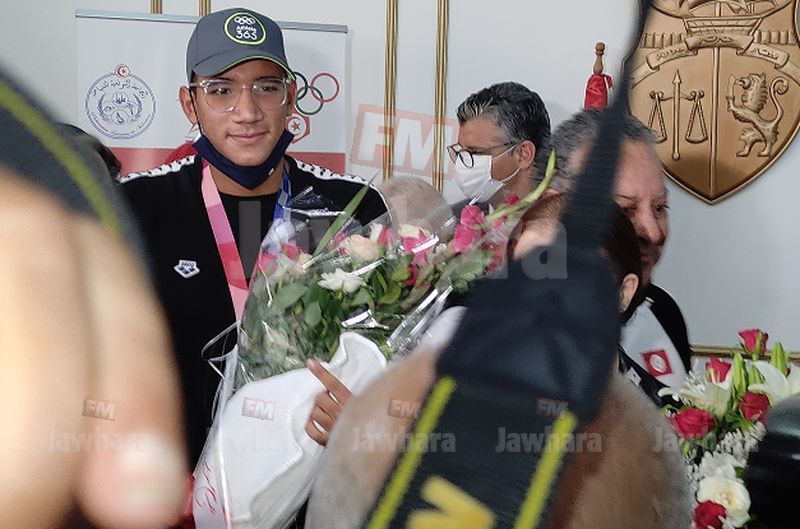 وصل اليوم السبت 31 جويلية 2021 البطل الاولمبي احمد ايوب الخفناوي الى مطار تونس قرطاج بعد تحقيقه لميدالية ذهبية في سباق 400 متر سباحة حرة في الالعاب الاولمبية طوكيو 2020.