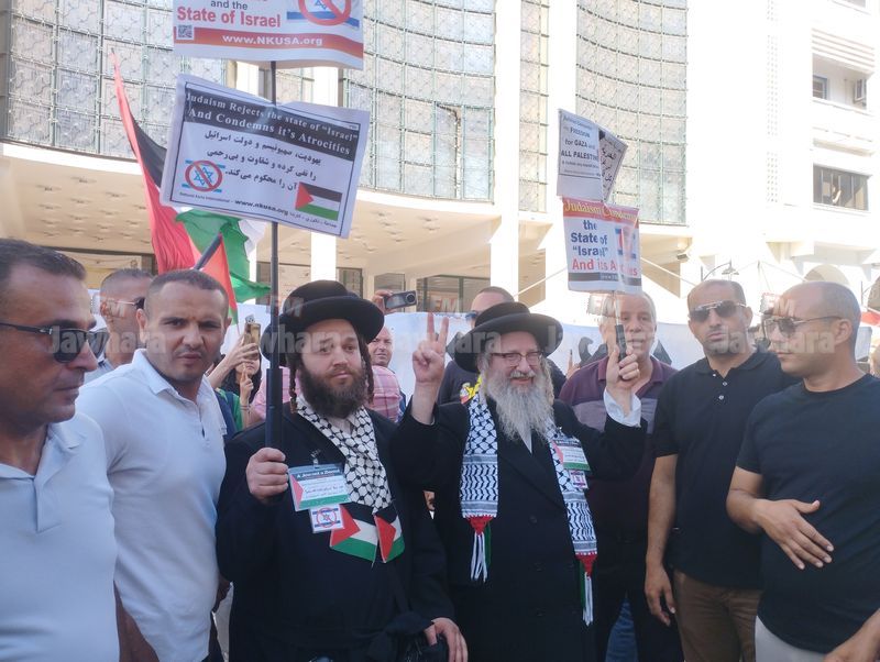 ورفع عدد من المواطنين، بمشاركة عدد من اليهود المساندين للقضية الفلسطينية، شعارات مساندة للشعب الفلسطيني ولصموده في وجه العدوان، و مندّدة بجرائم الاحتلال في حق الفلسطينيين.
