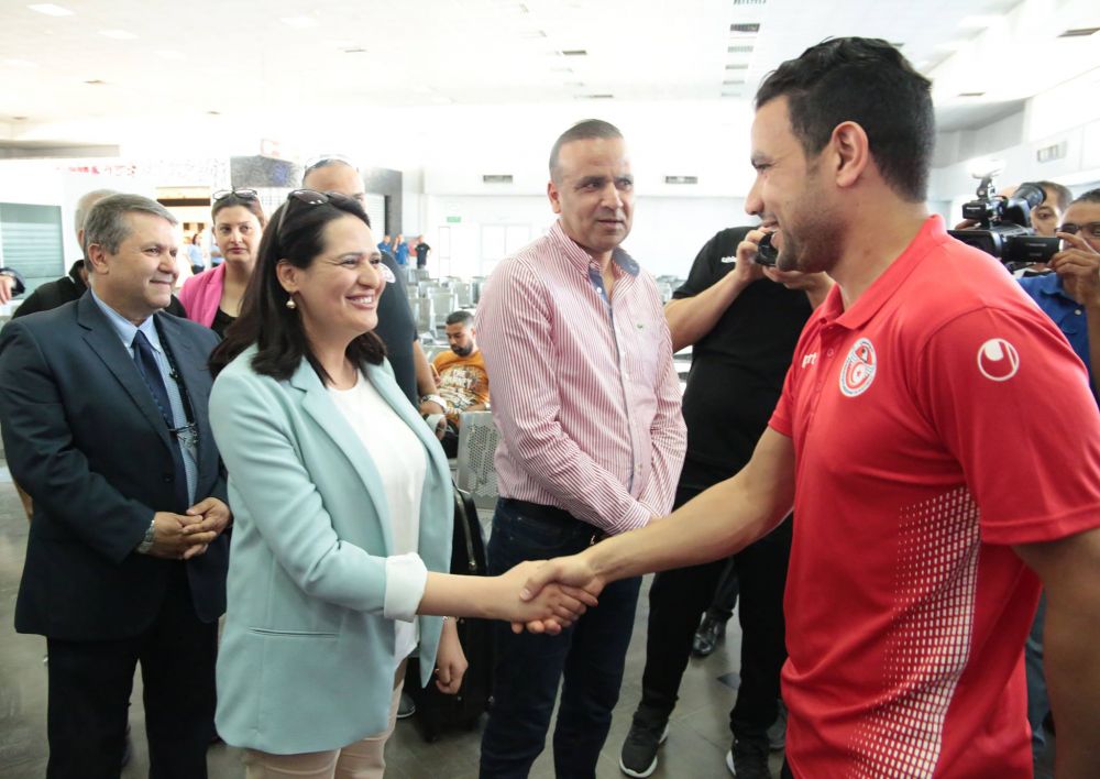 هذا ، و قد كانت السيدة ماجدولين الشارني وزيرة شؤون الشباب و الرياضية المرفوقة بالسيد عماد الجبري كاتب الدلة للرياضة في توديع عناصرنا الوطنية عند المغادرة بمطار الحجيج .