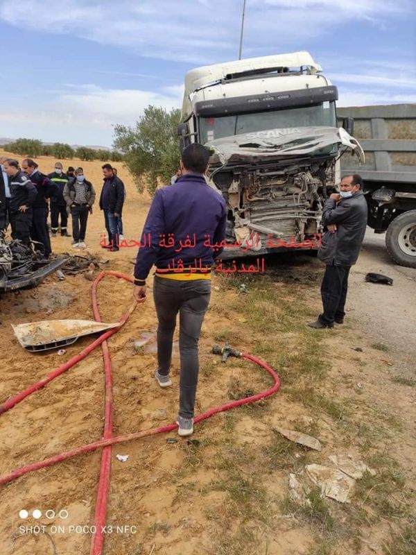 جدّ اليوم الثلاثاء 13 أفريل 2021 ، حادث مرور أليم بين سيارة تابعة للحرس الديواني بالرڨاب وشاحنة ثقيلة مما أسفر عن وفاة رئيس فرقة الحرس الديواني بالرقاب وأحد أعوانه ، أثناء قيامهم بمهمة عمل على منشأة إدارية على مستوى الطريق الجهوية 63 الرابطة بين المكناسي وسيدي بوزيد.