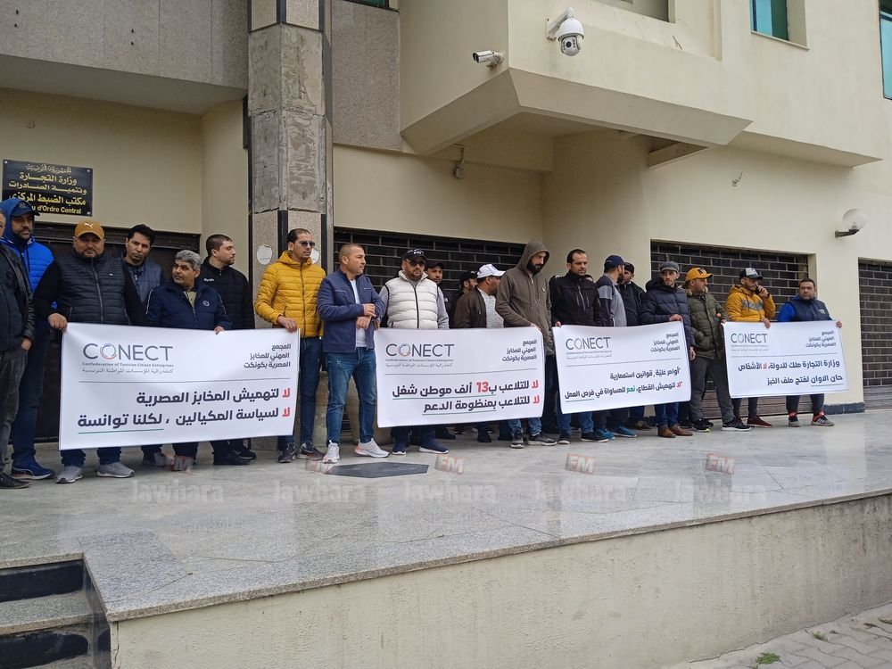 نفّذ اليوم الثلاثاء أصحاب المخابز العصرية وقفة احتجاجية أمام مقر وزارة التجارة بالعاصمة.