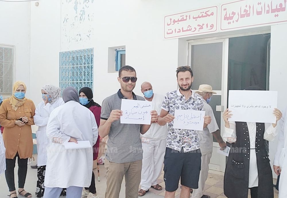و أوضح عدد من المحتجين أن الحاجة لخدمات سيارة الإسعاف ازدادت خصوصا في ظل هذه الظروف الصحية اضافة الى عدم توفر الإمكانيات البشرية و التجهيزات مع تواصل وحدة الأشعة عن العمل بسبب الشحن في بوابة الديوانة التونسية.