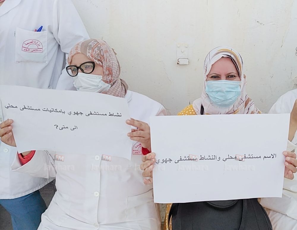 وقفة احتجاجية لإطارات الصحة بكل من مستشفى شربان و الجم (صور)