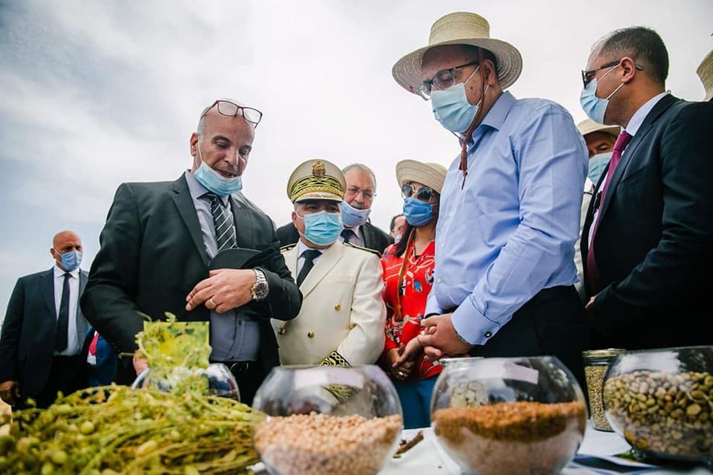 كما إعتبر بالمناسبة أنه وبالرغم من بعض الصعوبات إلا أن صابة الحبوب لهذه السنة شهدت تطورا مقارنة بالموسم الفارط وهو ما يعتبر تتويجا لمجهودات الفلاحين وبشرى للتونسيين في ظل هذا الوضع الصعب.وحسب إحصائيات وزارة الفلاحة والموارد المائية والصيد البحري فإن التقديرات الأولية لإنتاج الحبوب بلغت حوالي 16.5 مليون قنطار مقابل 15.3 مليون قنطار في الموسم الماضي أي بزيادة بـ7 بالمائة.