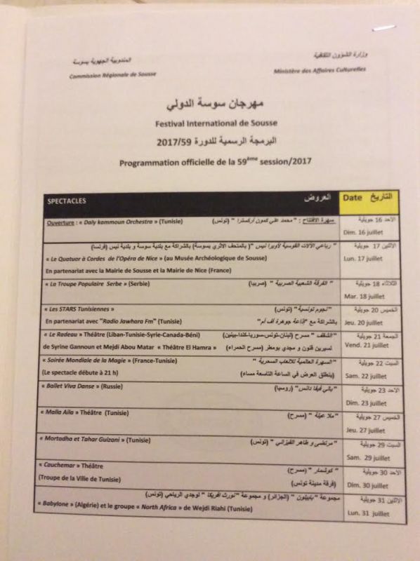 برنامج الدورة 59 لمهرجان سوسة الدولي