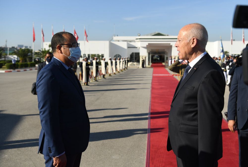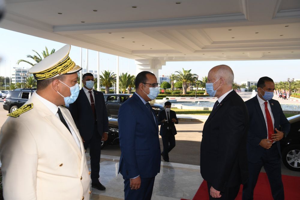 وكان في توديع رئيس الجمهورية بالمطار رئيس الحكومة هشام مشيشي، ووالي تونس  الشادلي بوعلاق، ورئيسة بلدية تونس  سعاد عبد الرحيم وعدد من أعضاء الديوان الرئاسي.