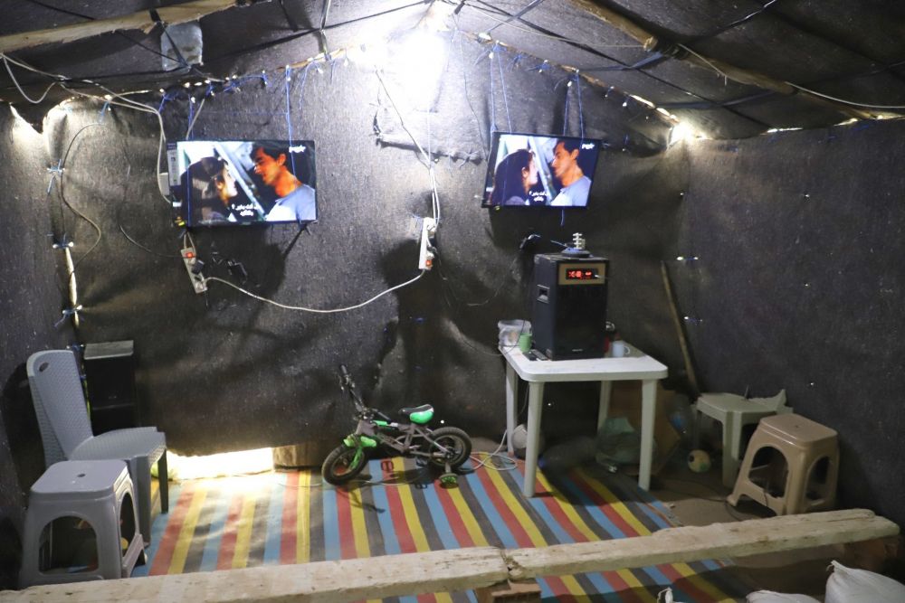 كما تمّ تخصيص خيمة لشحن الهواتف، فيما كُتب على 3 خيمات "هذا مسجد"، وأظهرت إحدى الصور، شخصين يَحملان مُحرّكا يُستعمل لتوليد الكهرباء.