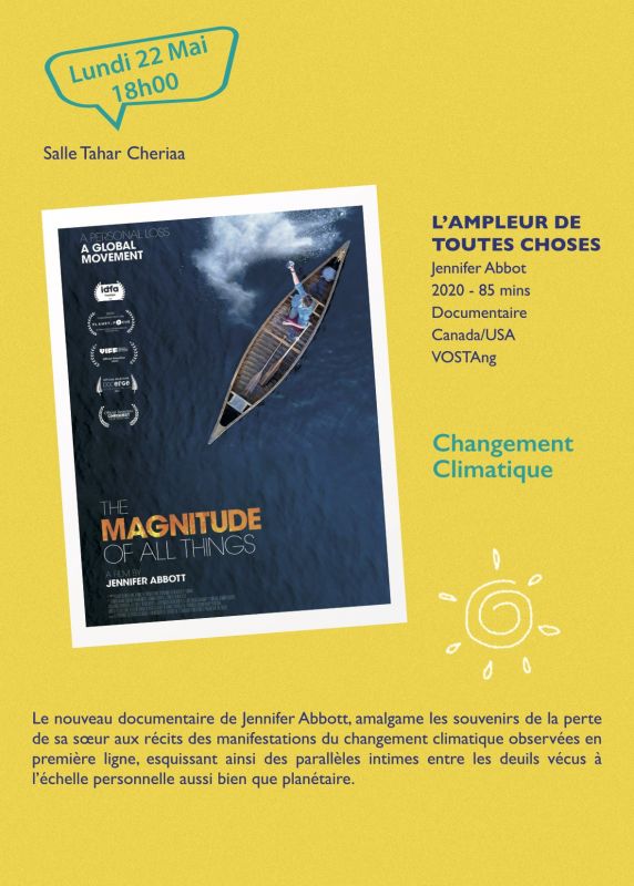 وحسب بلاغ للمنظمين، سيكون الجمهور التونسي، على موعد مع سبعة أفلام تتناول قضايا البيئة والحلول الممكنة والتنمية المستدامة والزراعة والمياه والتلوث والاحتباس الحراري والمناخ والسياحة البيئية والأزياء، ثمّ تكون مشفوعة بنقاش ثري و بناء.