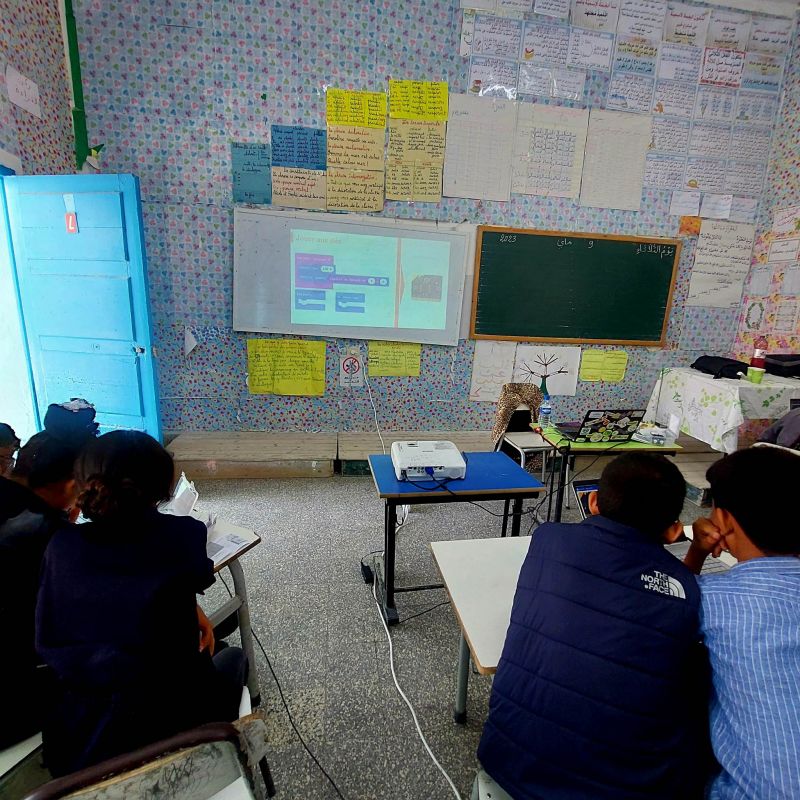 بالإضافة إلى الدورة التكوينية التي شملت الاطار التربوي والتلاميذ حول استخدامات اللوحات الرقمية التي تتضمن محتويات وبرامج رسمية معتمدة من وزراة التربية للمرحلة الابتدائية، تمّ القيام بورشة تدريبية في مجال الروبوتات Robokid لفائدة تلاميذ المدرسة حيث تندرج هذه الدورة التكوينية في إطار المسؤولية المجتمعية مؤسسة أورنج للأعمال الخيرية Fondation Orange الهادفة إلى تعزيز وتقوية القدرات الابتكارية للتلاميذ خاصّة في مجالات البرمجة والروبوتات.