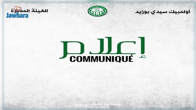 أعلنت الهيئة المديرة لأولمبيك سيدي بوزيد ، في بلاغها الصادر اليوم على الصفحة الرسمية للفريق، انه قد تقرر على اثر اجتماع الهيئة المنعقد صباح اليوم ، تجميد نشاط 4 لاعبين الى حين عرضهم على مجلس التأديب وهم :