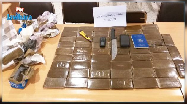 تمكنت خلال الليلة الفاصلة بين 20 و21 جويلية 2019 وحدات منطقة الأمن الوطني بتاجروين ولاية الكاف من ضبط شخص (47 سنة) على متن سيارة والتي بتفتيشها أمكن حجز 57 صفيحة من مخدر القنب الهندي "الزطلة" تزن 5.7 كلغ كانت مخفيّة بإحكام داخل السيارة المذكورة، وفق بلاغ وزارة الداخلية.
