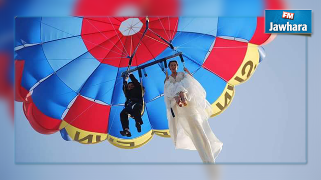 وخلافا لما يعرف في حفلات الزواج من حضور للمدعوويين والفرقة الموسيقية والأضواء اختار أحمد البالغ من العمر 26 سنة أن يحتفل بزواجه في مظلة (براشوت) حيث اتجه مع حبيبته التي كانت ترتدي فستانا أبيض إلى الشاطئ وصعدا في مظلة وكانا سعيدين جدا.
