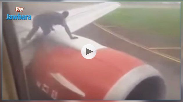 قفز على جناح الطائرة قبل لحظات من إقلاعها..!!(فيديو)