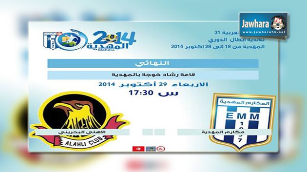 يواجه مساء اليوم الاربعاء مكارم المهدية في الدور النهائي للبطولة العربية للأندية البطلة في كرة اليد الأهلي البحريني بداية من الساعة 17:30 مساء بقاعة رشاد خوجة بالمهدية .