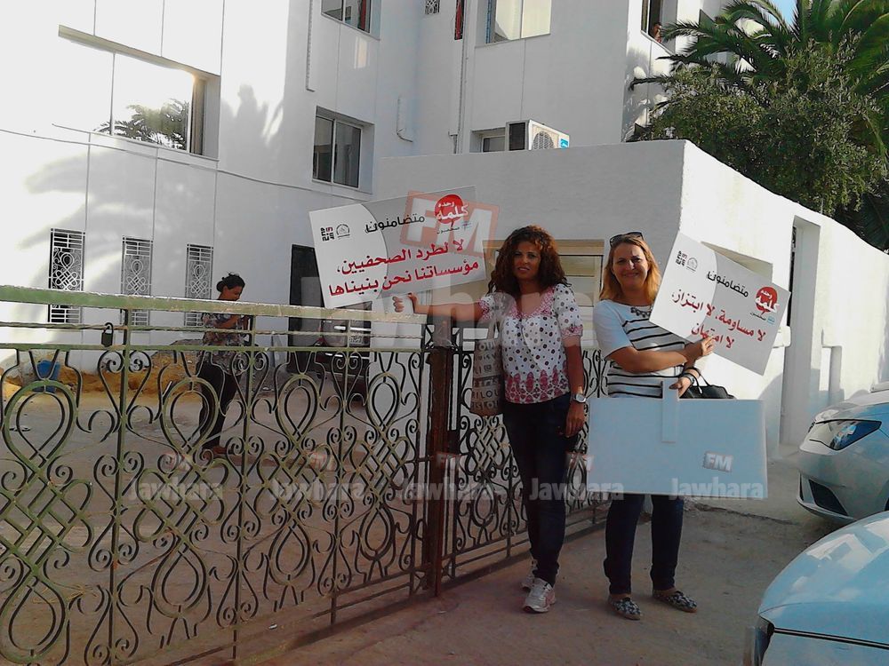 الصحفية نسرين حامدي في اعتصام مفتوح بمقر قناة الحوار التونسي لليوم الثاني على التوالي