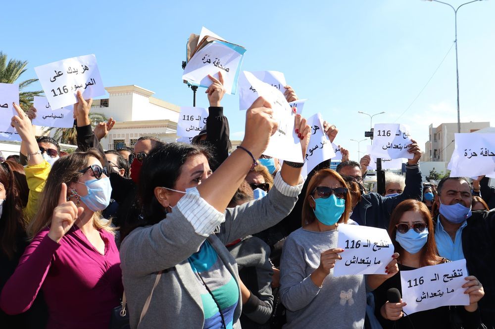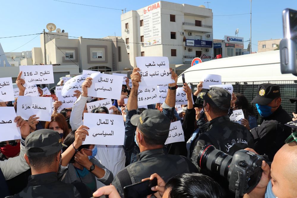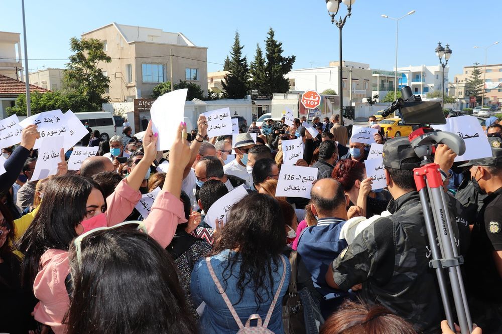 الصحفيون أمام البرلمان بصوت واحد: " تنقيح الـ 116 مايتعداش.. ولا للمال السياسي "