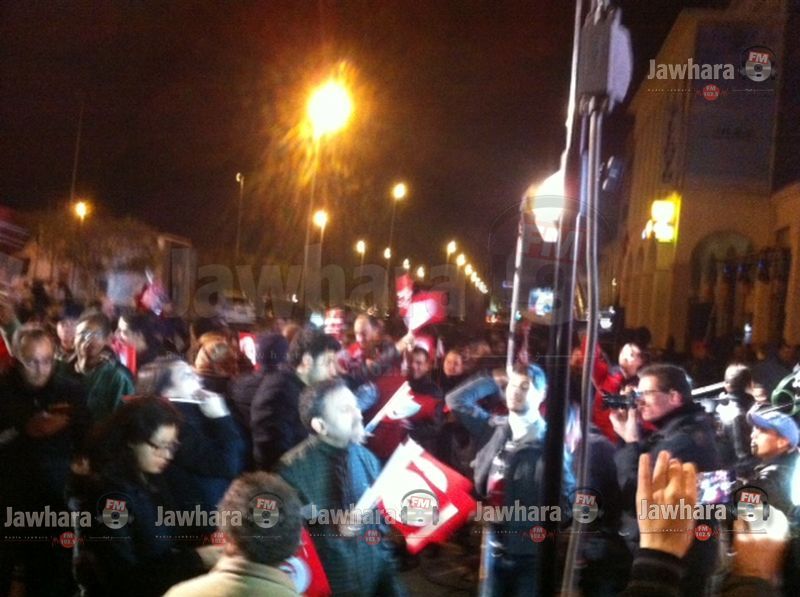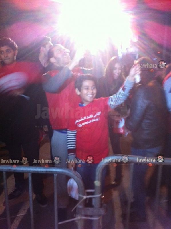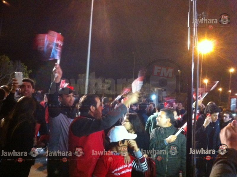 انصار الباجي يحتفلون امام مقر حملة الباجي بتونس‎