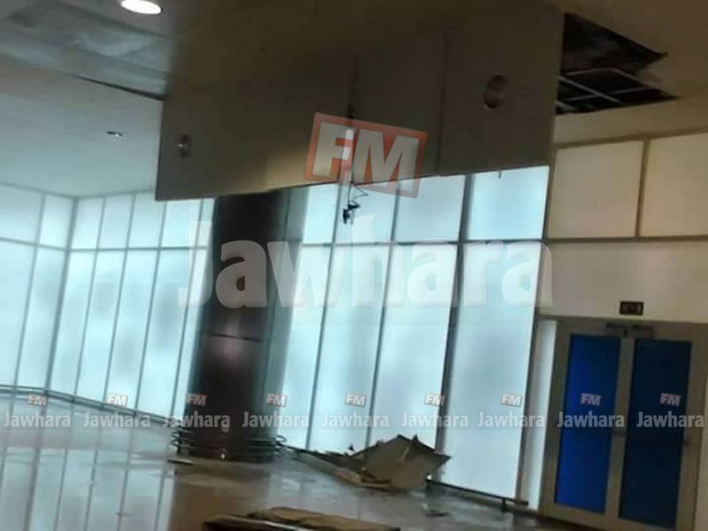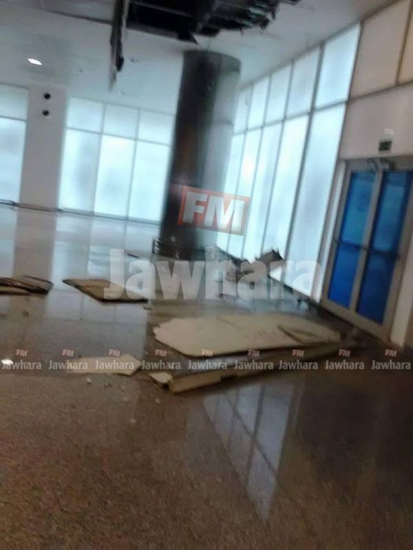 بسبب الأمطار..سقوط جزء من سقف مطار النفيضة والقاعة الرئيسية تغمرها المياه ‼