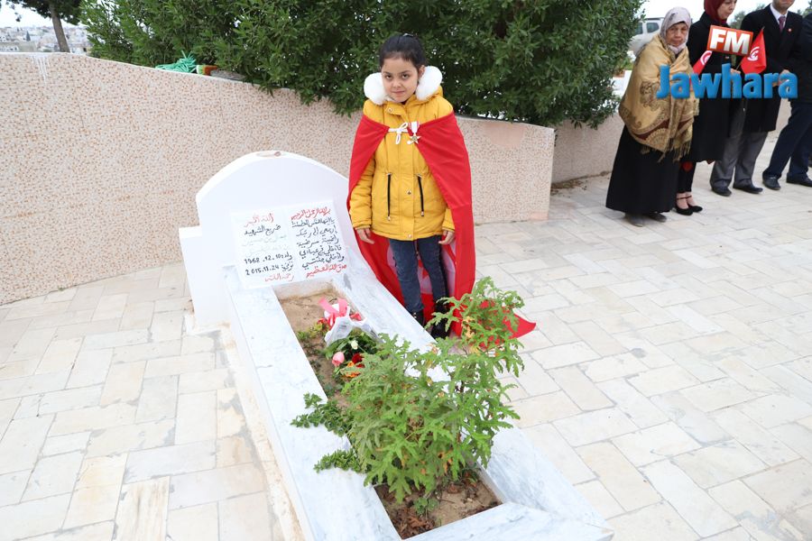 تحية العلم بمقبرة الشهداء بأكودة تخليداً لذكرى إستشهاد نقيب الأمن جمال عبد الجليل