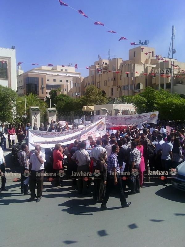 تواصل إضراب قطاع التعليم العالي في أغلب الجهات على غرار المهدية صفاقس باجة جندوبة قفصة للمطالبة بالتسريع في تنفيذ الاتفاقيات المبرمة و كذلك على خلفية إيقاف 5 أعوان عن العمل كما يطالبون أيضا بالتسوية في الأجور مع قطاع التربية