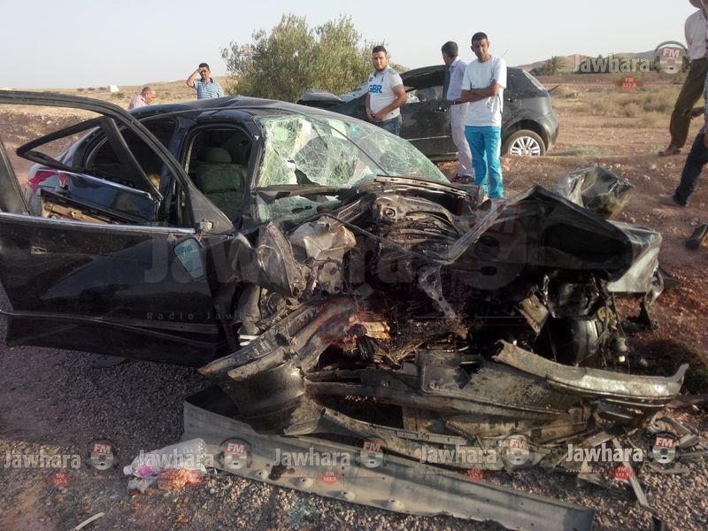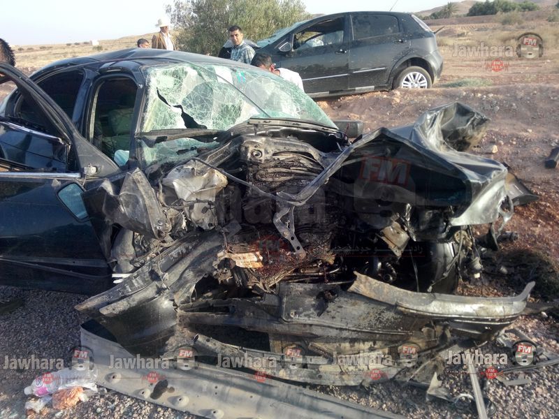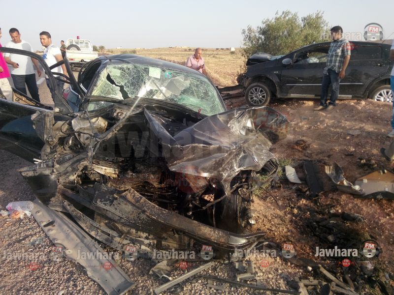 حادث مرور مروع بين سيارتين ليبية و تونسية على الطريق الوطنية 19 بين مدنين وتطاوين