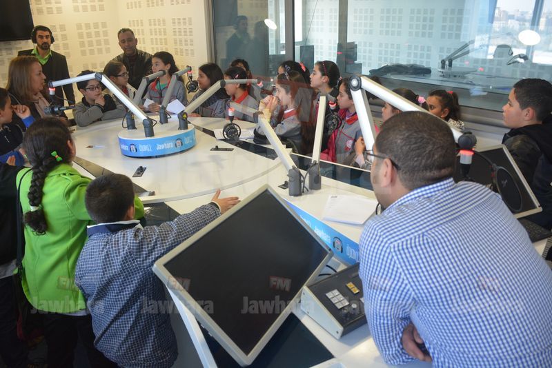 زيارة تلاميذ مدرسة "الحكيم قرول" لقسم الرياضة بإذاعة جوهرة أف أم