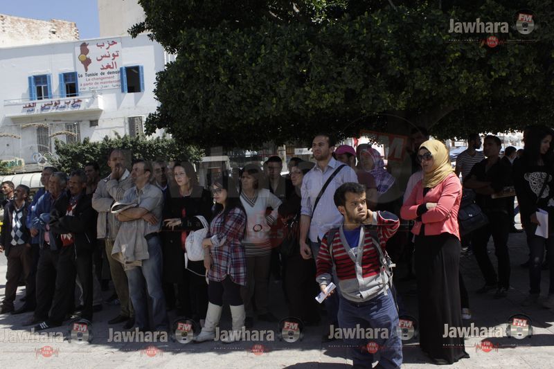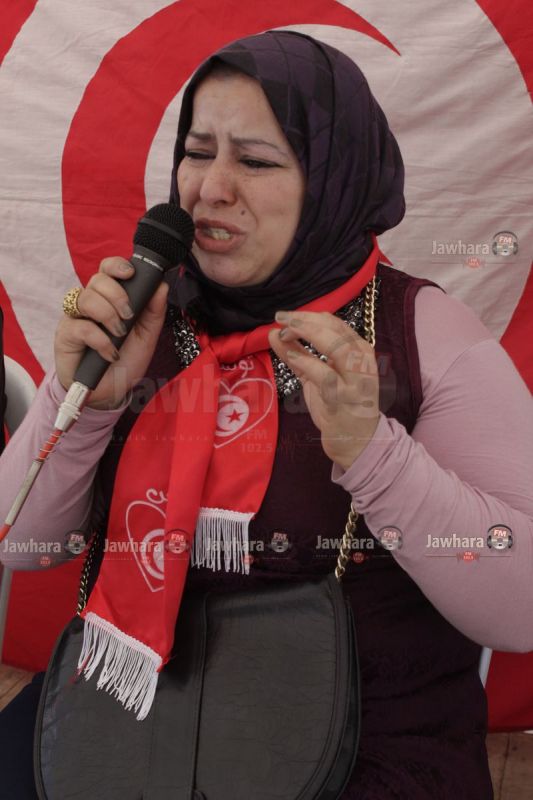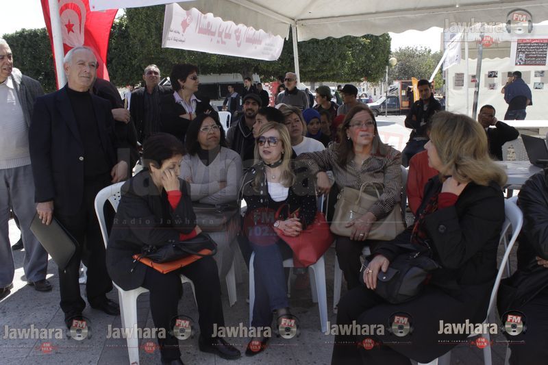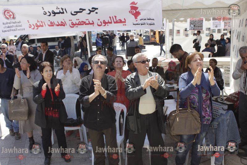 ساحة الشلي- سوسة : في اطار احياء ذكرى عيد الشهداء 9 أفريل نظمت منظمة جرحى الثورة تظاهرة بمشاركة عائلات الشهداء و القاضية كلثوم كنو و الأساتذة المحامين محمد الهادي العبيدي و صلاح الحجري.