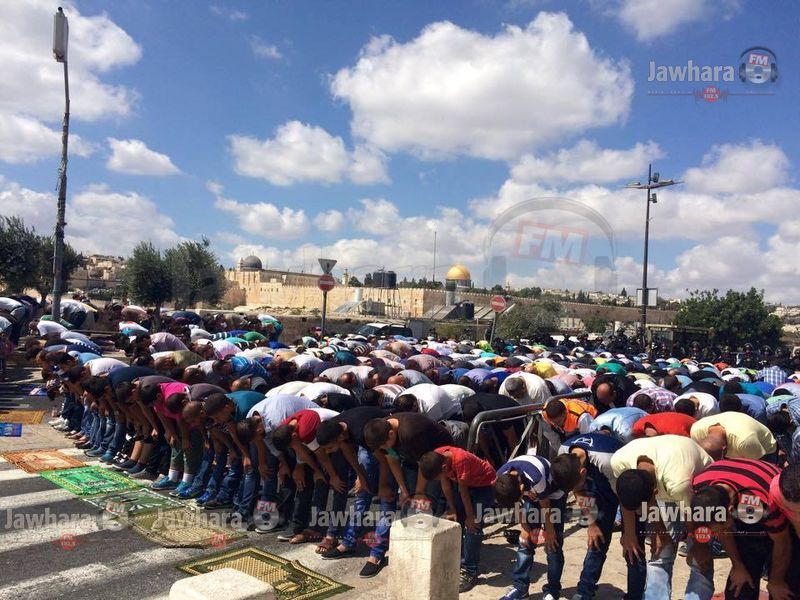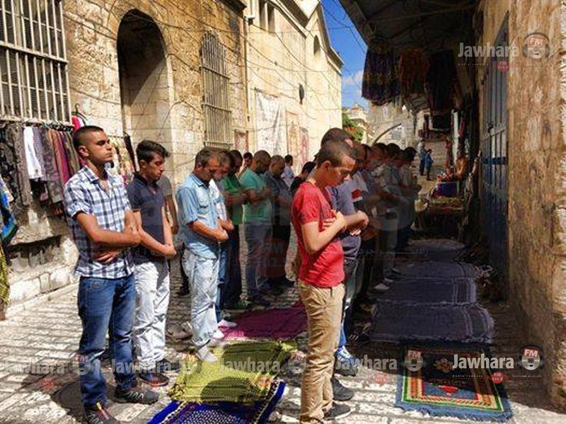فلسطينيون يصلون في الشوارع بعد منعهم من دخول المسجد الأقصى