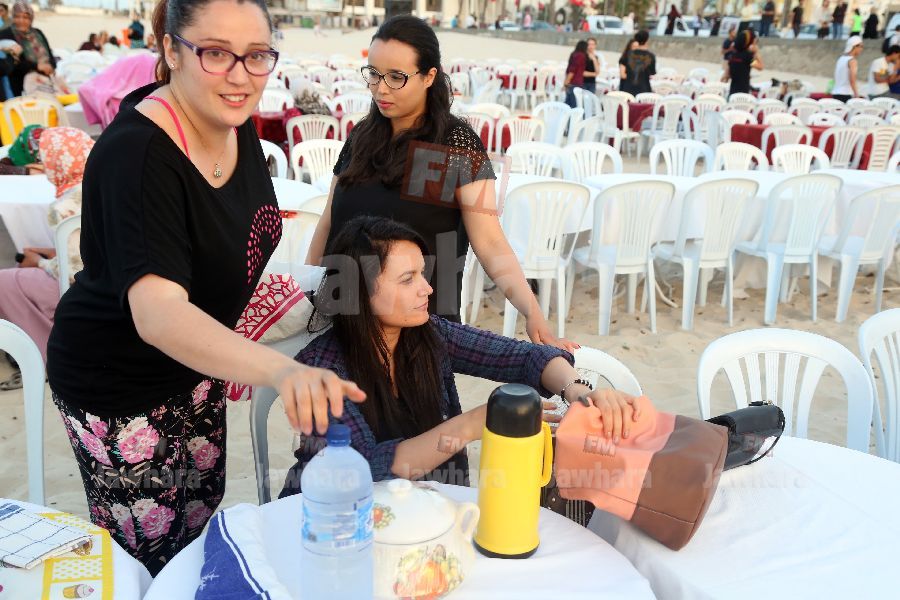 "لمتنا في حومتنا"... موائد إفطار جماعية بشاطئ بوجعفر