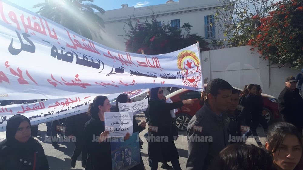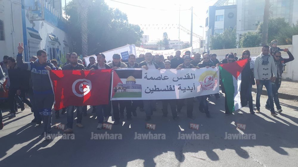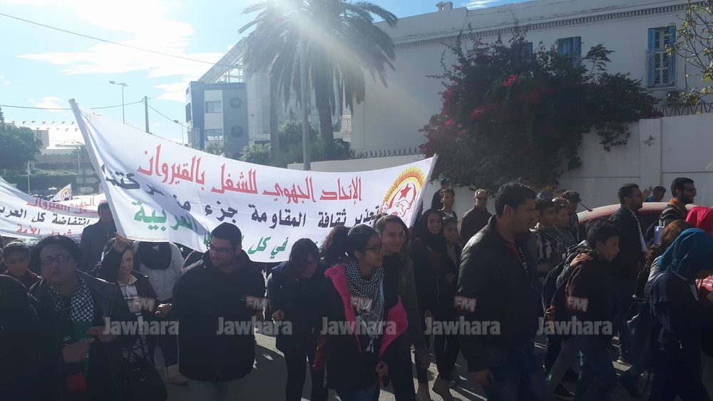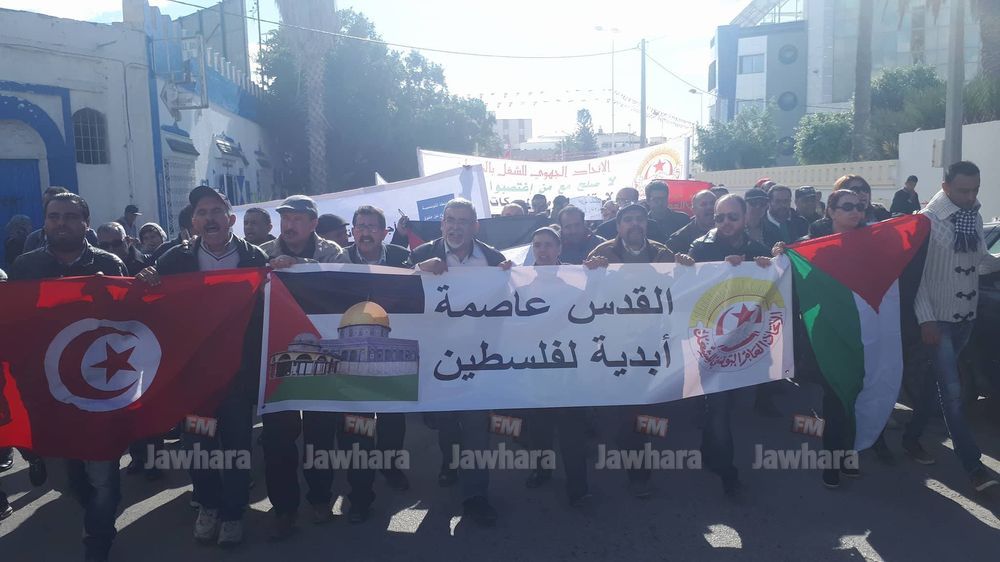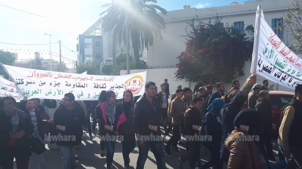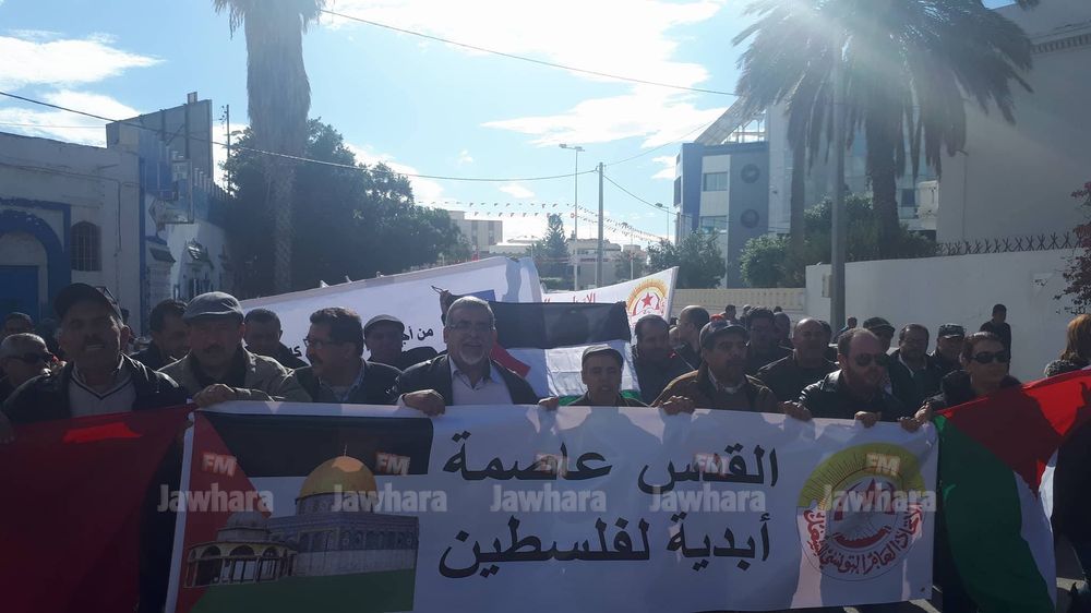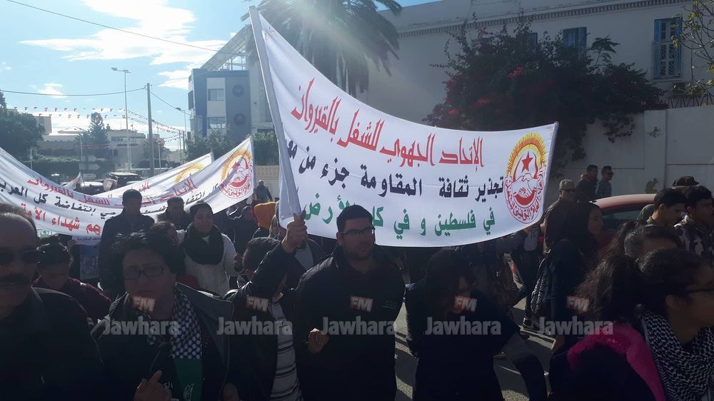 مسيرة الاتحاد الجهوي للشغل بالقيروان ضد قرار ترامب