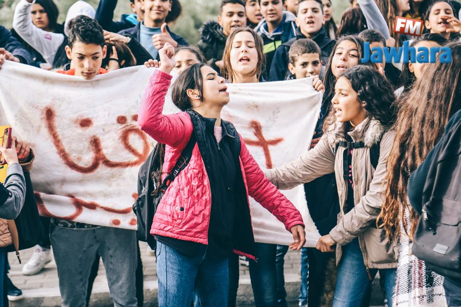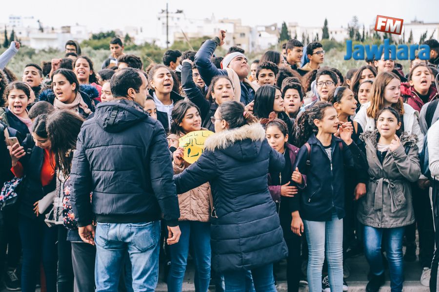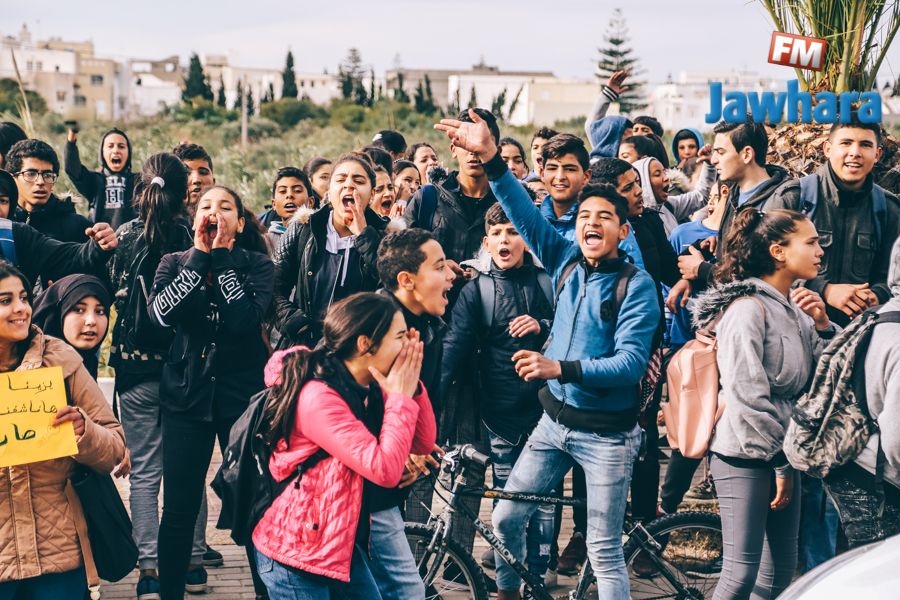 من أمام مقر إذاعة الجوهرة "اف ام" : تلاميذ يطالبون بإجراء الإمتحانات