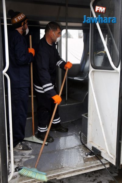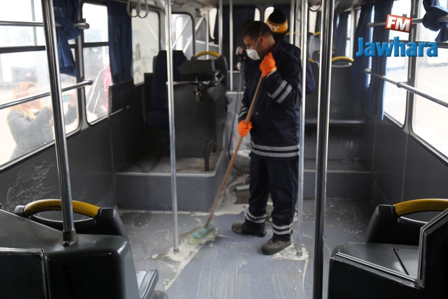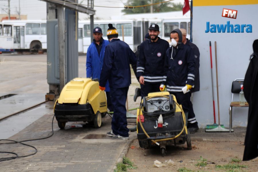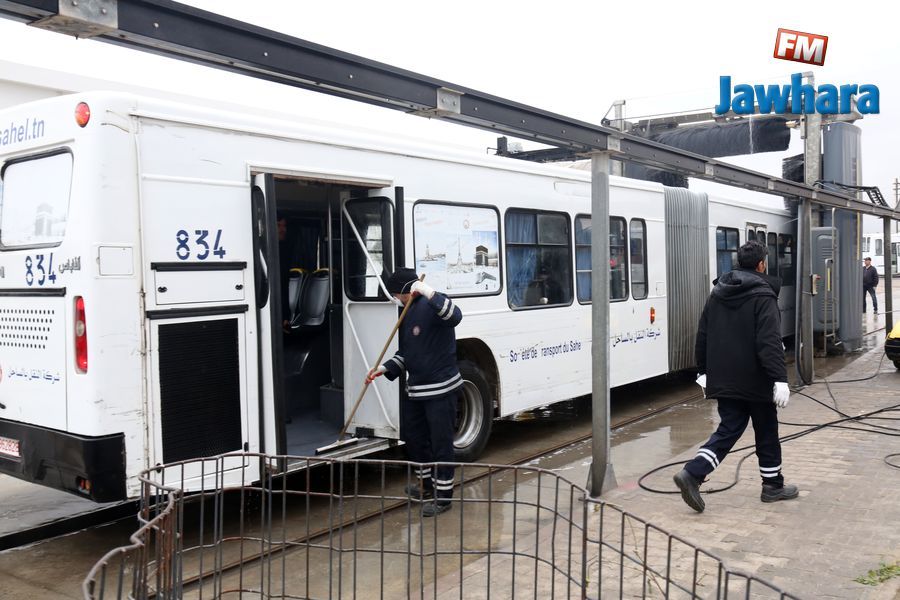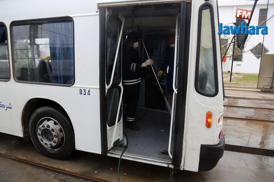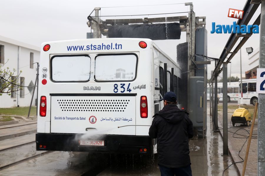 عملية تعقيم حافلات شركة النقل بالساحل