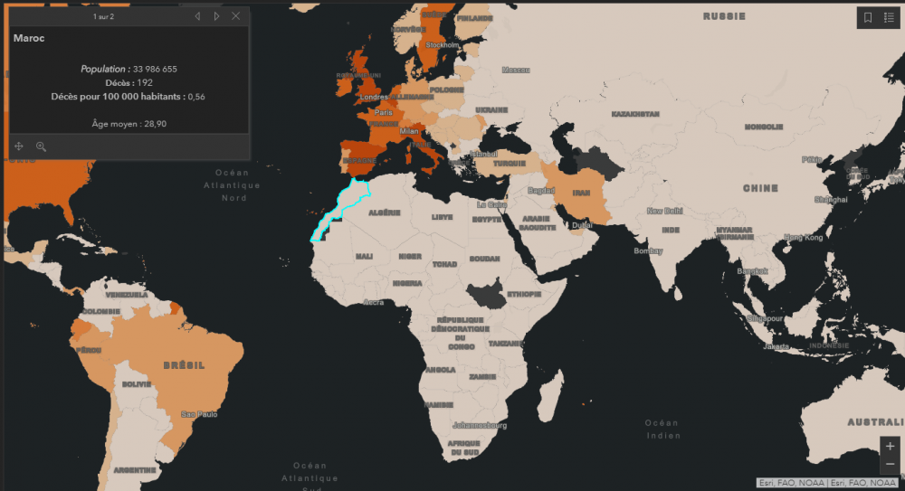 Comme le démontre cette carte interactive réalisée Esri France et reprise par LCI, Saint-Marin et ses 33.000 habitants se retrouvent comme les plus frappés par cette pandémie, avec un ratio de 122,25 décès pour 100.000 habitants.