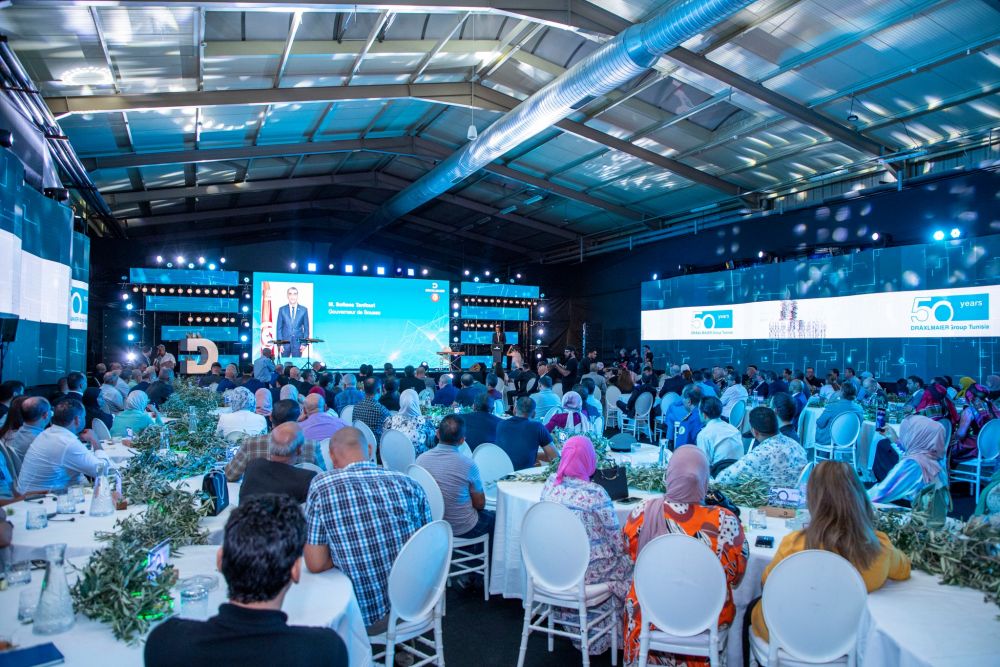 DRÄXLMAIER Group, pionnier et leader de l’industrie des équipementiers automobiles, célèbre son 50ème anniversaire en Tunisie. Une soirée spéciale a été organisée avec la participation de plusieurs invités d’honneur ; parmi eux : la ministre tunisienne de l’industrie, des mines et de l’énergie Mme. Fatma THABET CHIBOUB, le gouverneur de Sousse Mr. Sofiane TANFOURI.