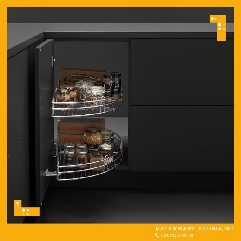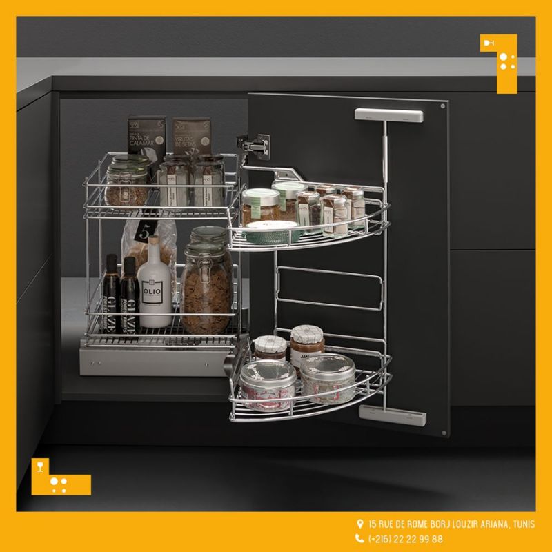 Porte couvert, Porte assiette… ou être complètement séduits par les accessoires d’angle tels que dynamic corner, easy corner, ou simplement vous serez tenté par notre Tiroir à l’anglaise