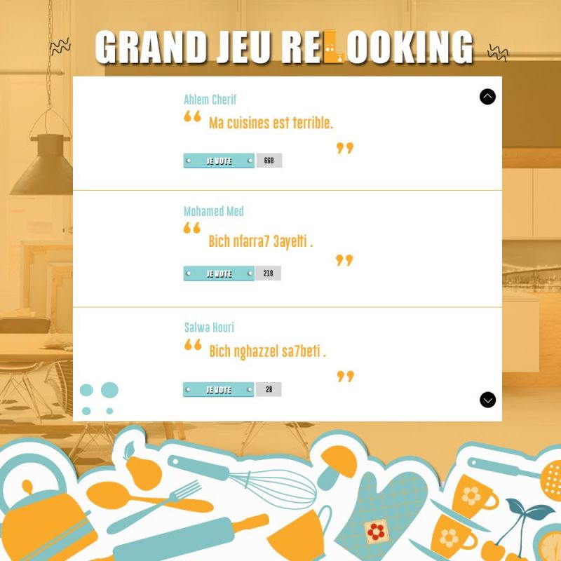 - Citer La raison qui vous pousse à relooker votre cuisine : attention plus vous êtes drôle, plus vous avez la chance de gagner J