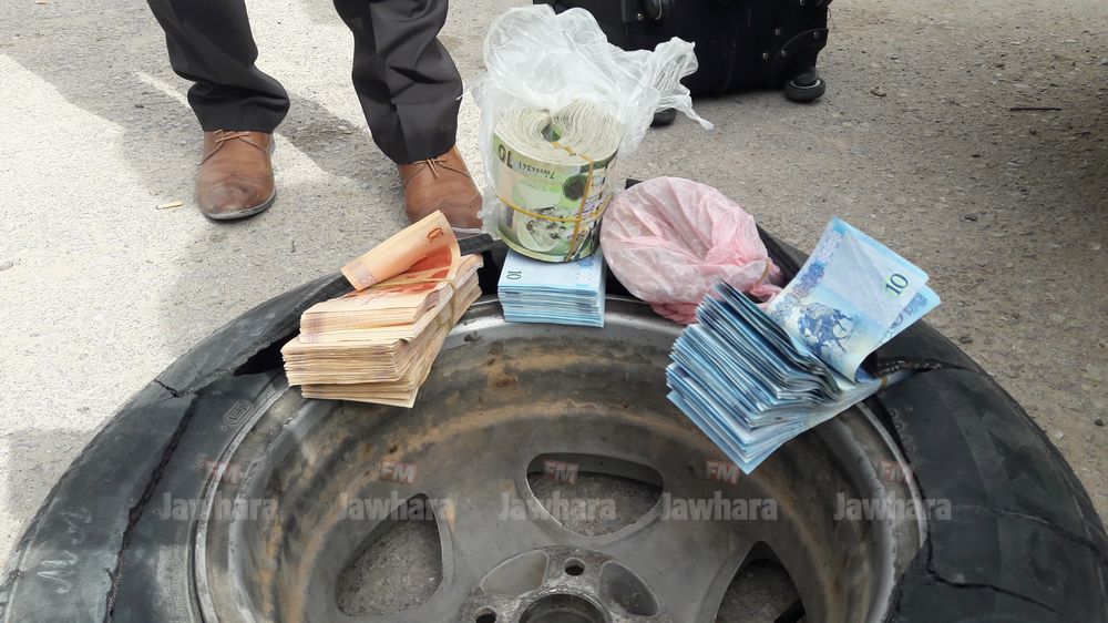 Selon le correspondant de Jawhara FM qui cite une source sécuritaire, une somme d'argent en devise étrangère a été saisie. Elle était cachée à l'intérieur d'un pneu.