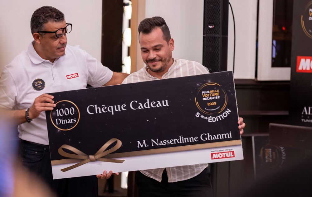 À signaler que cet événement « Plus Belle Voiture de l’Année 2025 » a également bénéficié du soutien de ses sponsors IMS OUTDOOR, DIWAN FM, ITB Tunisie et Côte D’Ivoire, PSL professionnal Sound&Lighting, Business News et que suite à un tirage au sort de tous les internautes participants, les 2 gagnant de ce Jeu-Concours « Plus Belle Voiture de l’Année 2025 », Aymen Kharrat et Nasserdine Ghanmi, ont reçu deux chèques de 1000 DT offerts par MOTUL TUNISIE.