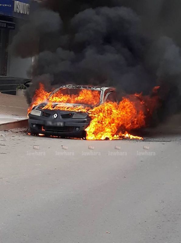 Une voiture stationnée dans une rue à Sahloul a pris feu, ce mercredi 9 janvier 2019.