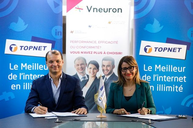 TOPNET, le leader des Services Internet en Tunisie vient de signer un partenariat stratégique avec Vneuron, le pionnier dans le domaine de la transformation digitale et la distribution des services de confiance numérique en Tunisie et sur les régions Afrique et Moyen Orient, lors d’une cérémonie organisée le Mardi 21 Juillet 2020 au Siège de TOPNET en présence de la Directrice Générale de TOPNET, Madame Rym AKREMI Ben Dhief, et de Mr Mohamed OUEDERNI, Executive Partner de Vneuron.