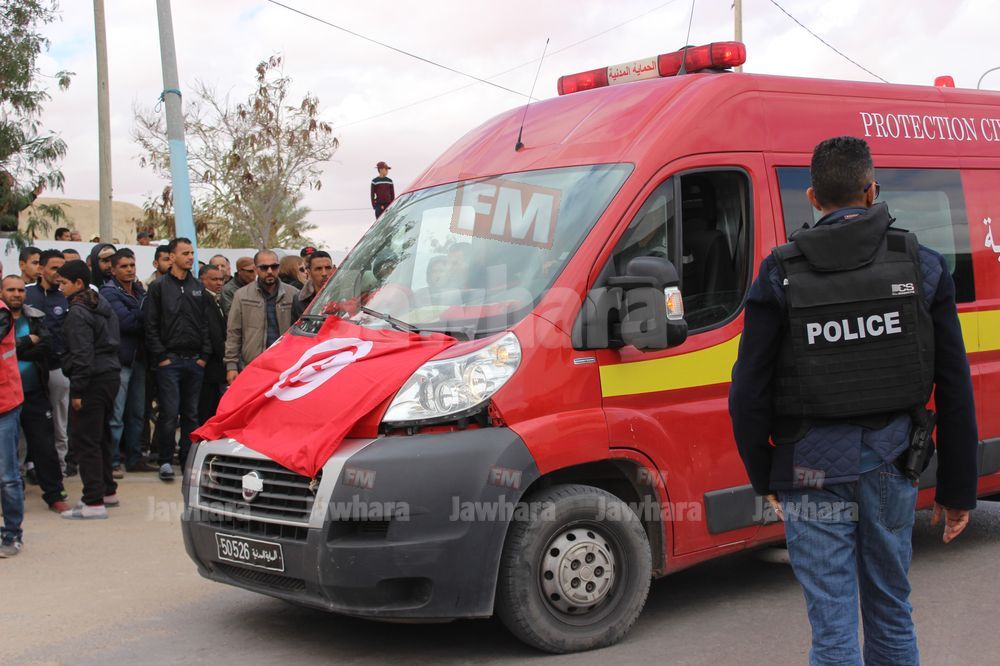 Arrivée des corps des martyrs de la nation à l'hôpital de Ben Guerdane