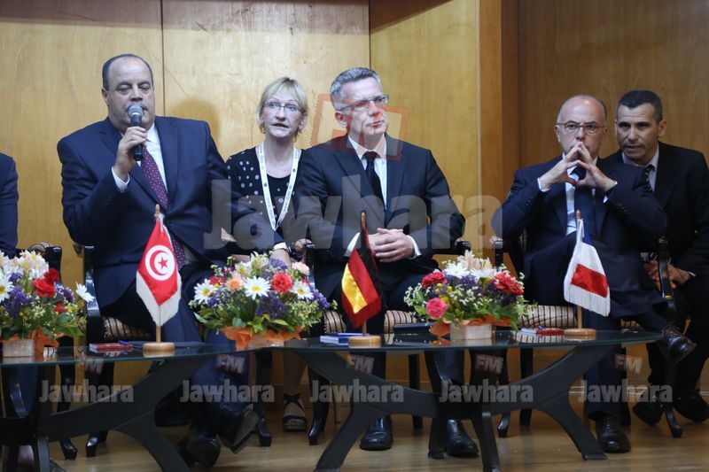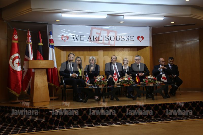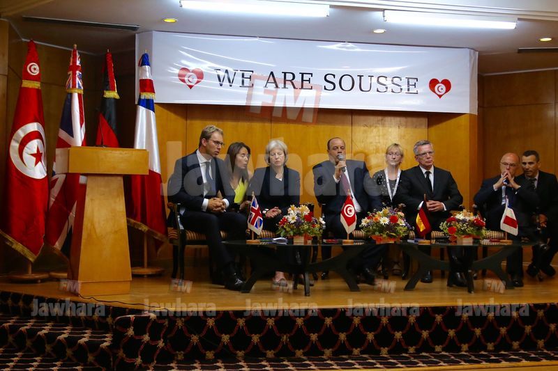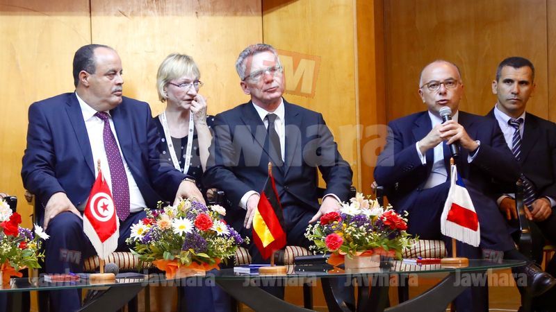 Conférence de presse des ministres de l'Intérieur tunisien, français, britannique et allemand à l'hôtel Impérial Marhaba