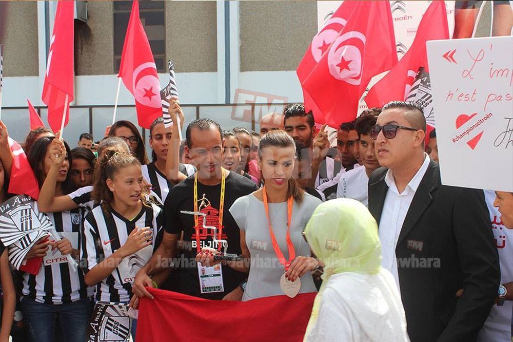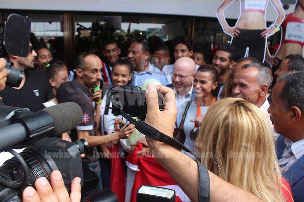 Habiba Ghribi accueillie en héroïne à l'aéroport de Tunis-Carthage