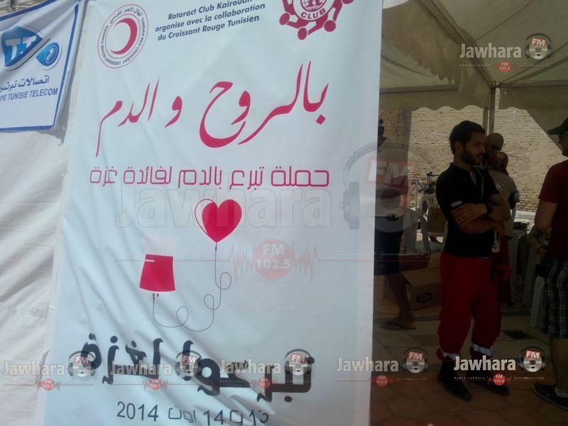 Rotaract club Kairouan oganise avec la collaboration du Croissant Rouge Tunisien une campagne de don de sang pour Gaza.