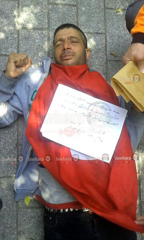 La bouche cousue, ce diplômé chômeur observe un sit-in face au ministère de l’Intérieur