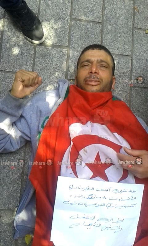 La bouche cousue, ce diplômé chômeur  observe un sit-in face au ministère de l’Intérieur