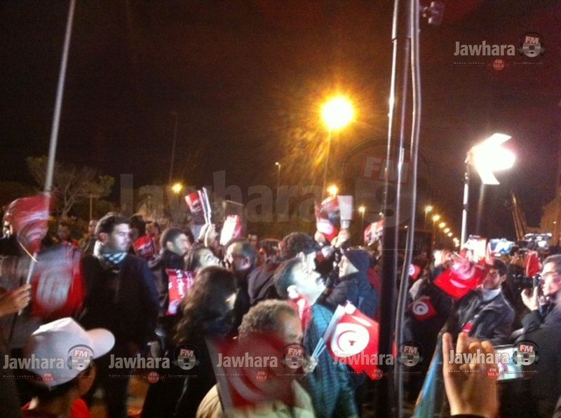 Les partisans de Béji Caïed Essebsi fête les résultats des Sondages devant le siège de Nidaa Tounes