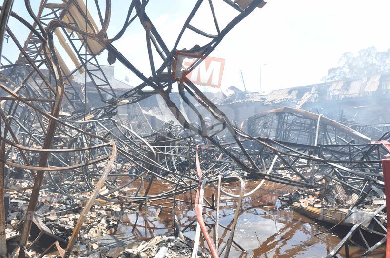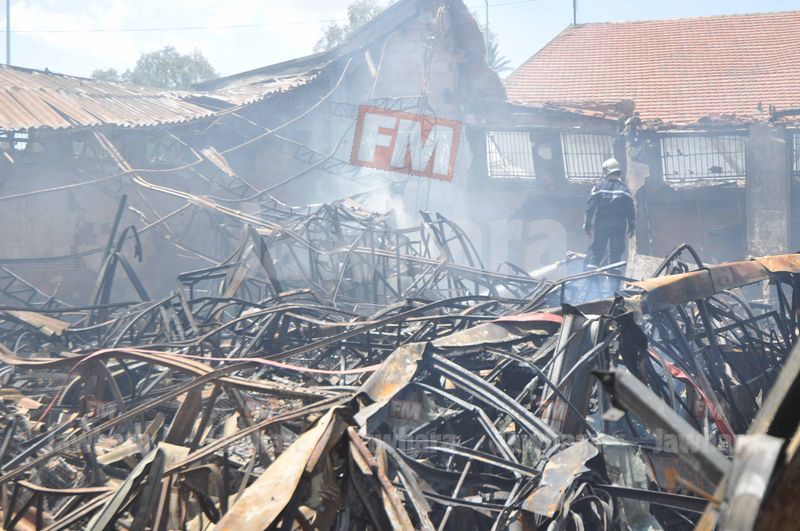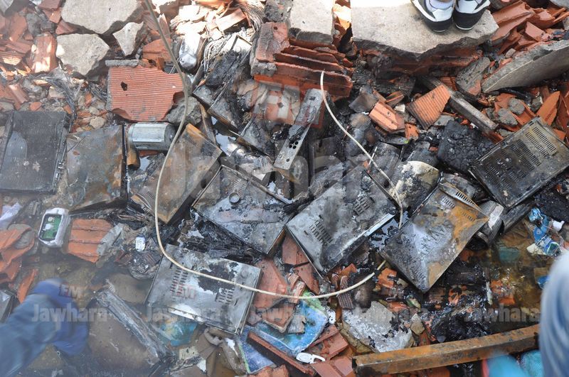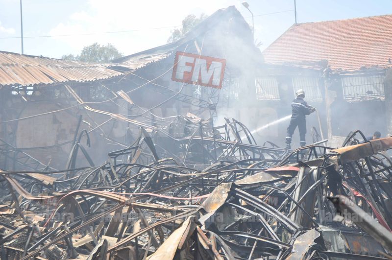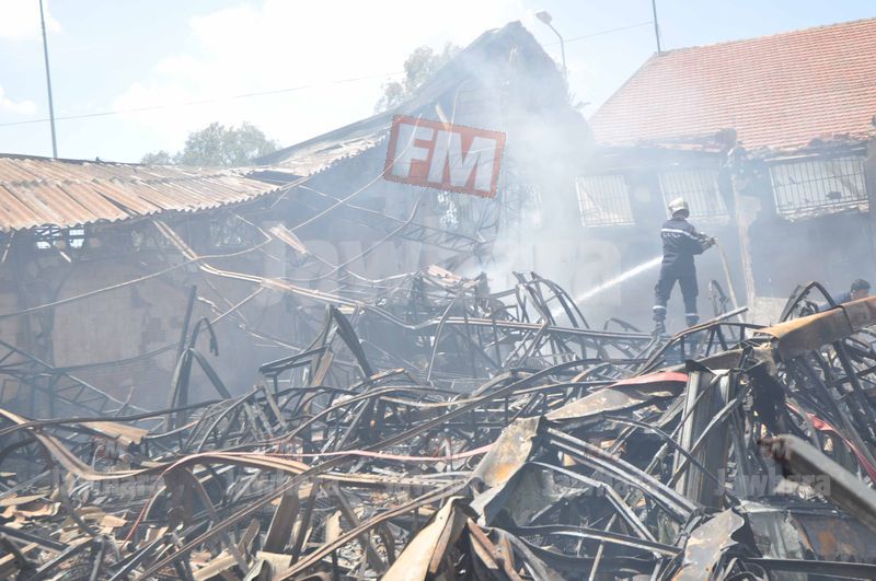 Les ruines au souk Moncef Bey suite à un violent incendie