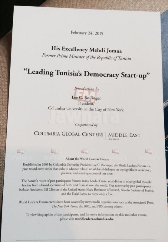 Mehdi Jomaa à la conférence du Forum Mondial des Leaders à Columbia University, New York