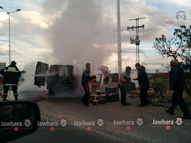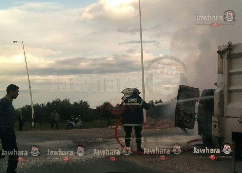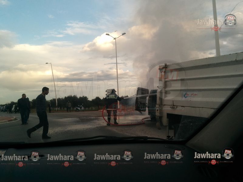 Monastir : Un véhicule de transport routier de marchandises prend feu